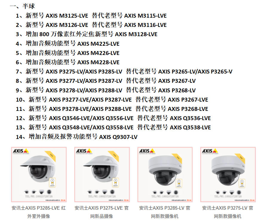 1、新型號AXIS M3125-LVE 替代老型號AXIS M3115-LVE