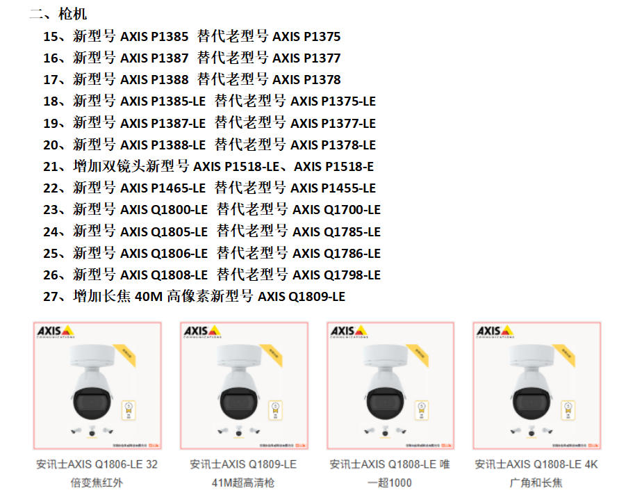 安訊士AXIS槍型攝像機新老型號替代匯總二