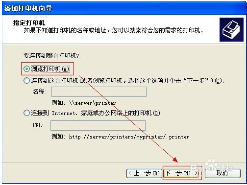 3.依次點擊“開始→設(shè)置→打印機”,在“打印機”窗口中,雙擊“添加打印機”。進入“添加打印機向?qū)А贝翱冢c擊“下一步”按鈕。在“本地或網(wǎng)絡(luò)打印機”選擇界面中,選擇“網(wǎng)絡(luò)打印機”,然后點擊“下一步”按鈕。在“查找打印機”窗口中,直接點擊“下一步”按鈕。進入“瀏覽打印機”窗口,在“打印機”欄中輸入“\\print-hp\HP”,然后點擊“下一步”按鈕,向?qū)詣影惭b打印機驅(qū)動程序。接著,在“默認打印機”界面中,選擇“是”。在“正在完成添加打印機向?qū)А苯缑嬷校c擊“完成”按鈕,即可實現(xiàn)跨網(wǎng)段共享打印機。