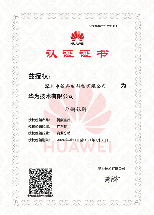 2020年續(xù)簽華為安防監(jiān)控代理權(quán)