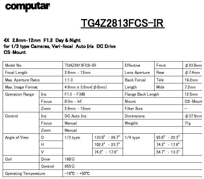 Computar TG4Z2813FCS-IR