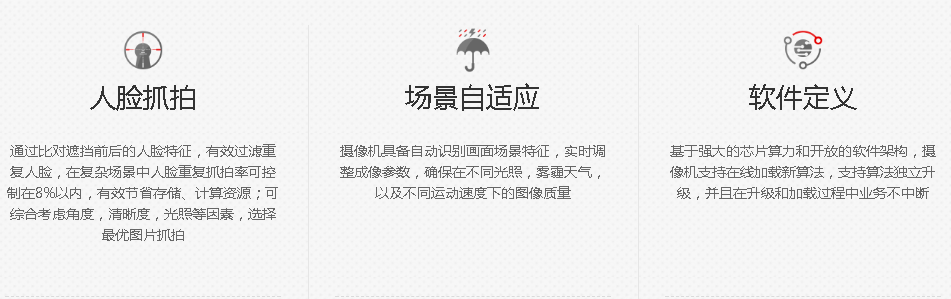| 人臉抓拍 | 支持人臉、頭肩、人體同時(shí)檢測和最優(yōu)抓拍 | ||