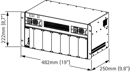 482 mm (19") x 222 mm (8.7") x 250 mm (9.8”)